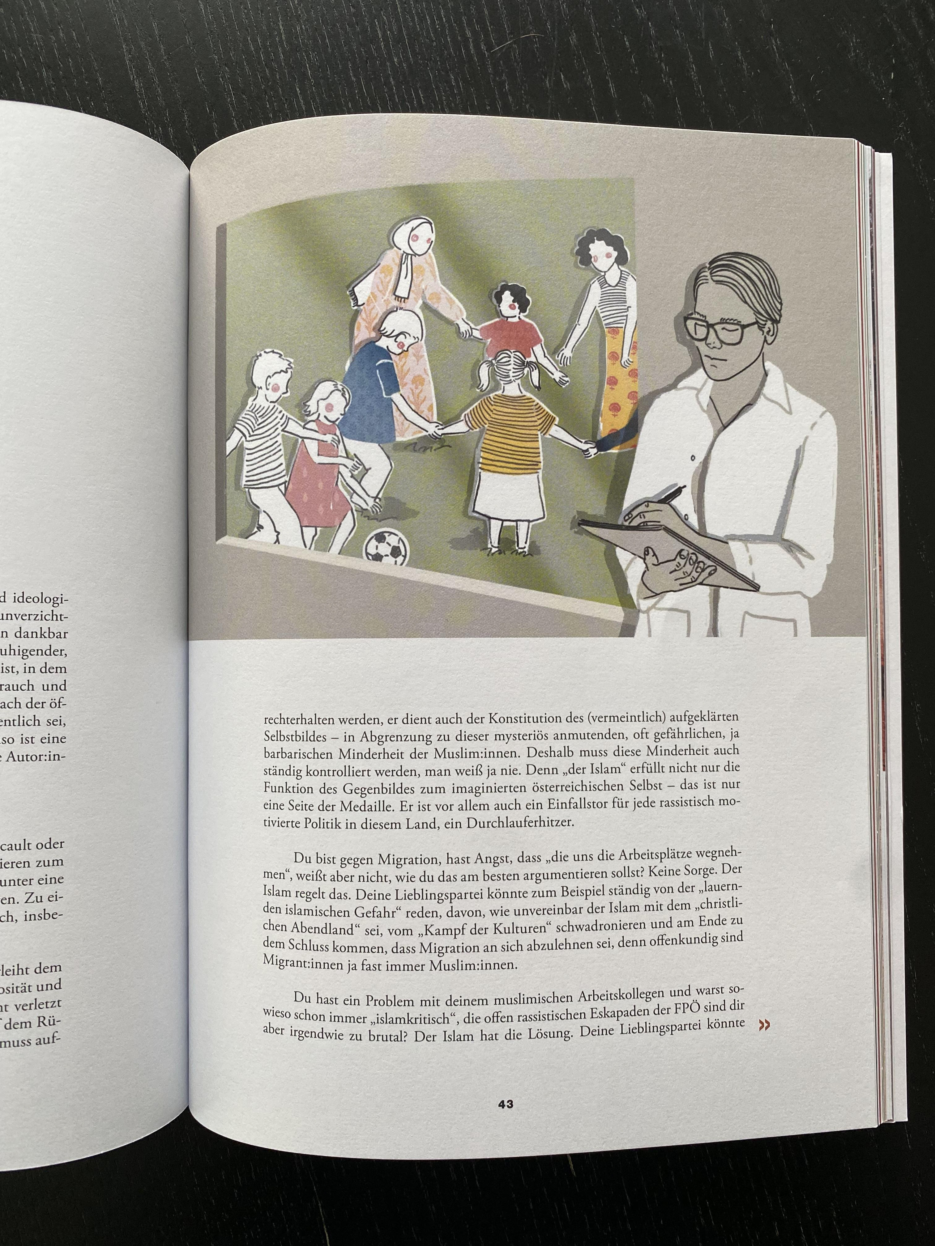 I´ve created a range of illustrations for the print magazine QAMAR, covering different topics, including animals in islam, everyday racism faced by muslims in Austria, and artwork addressing the denial of Srebrenica genocide.